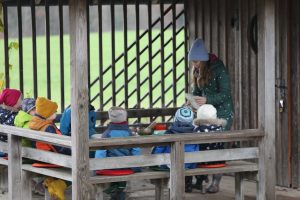Die Natur als Bildungsraum wahrnehmen und entdecken heißt es am Mittwochnachmittag. Der Kleine Wichtel „Tommte“ begleitet die Kinder in die Natur. Dort erleben die Kinder Bildung als einen ganzheitlichen Vorgang. Durch das spielerische und forschende Erkunden stehen, die sinnliche Wahrnehmung, das kreative Gestalten und das Experimentieren im Mittelpunkt. Dabei wollen wir soweit möglich bei fast jedem Wetter, mit wetterfester Kleidung den Nachmittag in unserem herrlichen Garten verbringen.