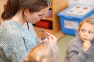 „Zahlenspiele und Formen“, heißt es am Montagnachmittag. Der Zahlenwurm Zora begleitet die Kinder in diesem Projekt und bietet Ihnen verschiedenste Spiele, Experimente und gezielte Beschäftigungen an, um sie bei der Entwicklung grundlegender mathematischer Kompetenzen zu unterstützen. Dabei wir das Zahlen- und Mengenverständnis trainiert und zum logischen Denken angeregt.